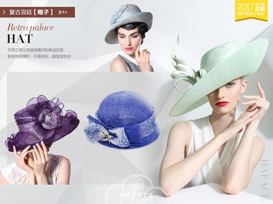 韩国独立设计,产品线囊括了头饰、精品首饰和时尚眼镜、围巾、帽子等季节性产品。考究的造型创意,精致的原材料运用,别具匠心的色彩搭配,是HAFACE呈献给时尚女性的感官盛宴。